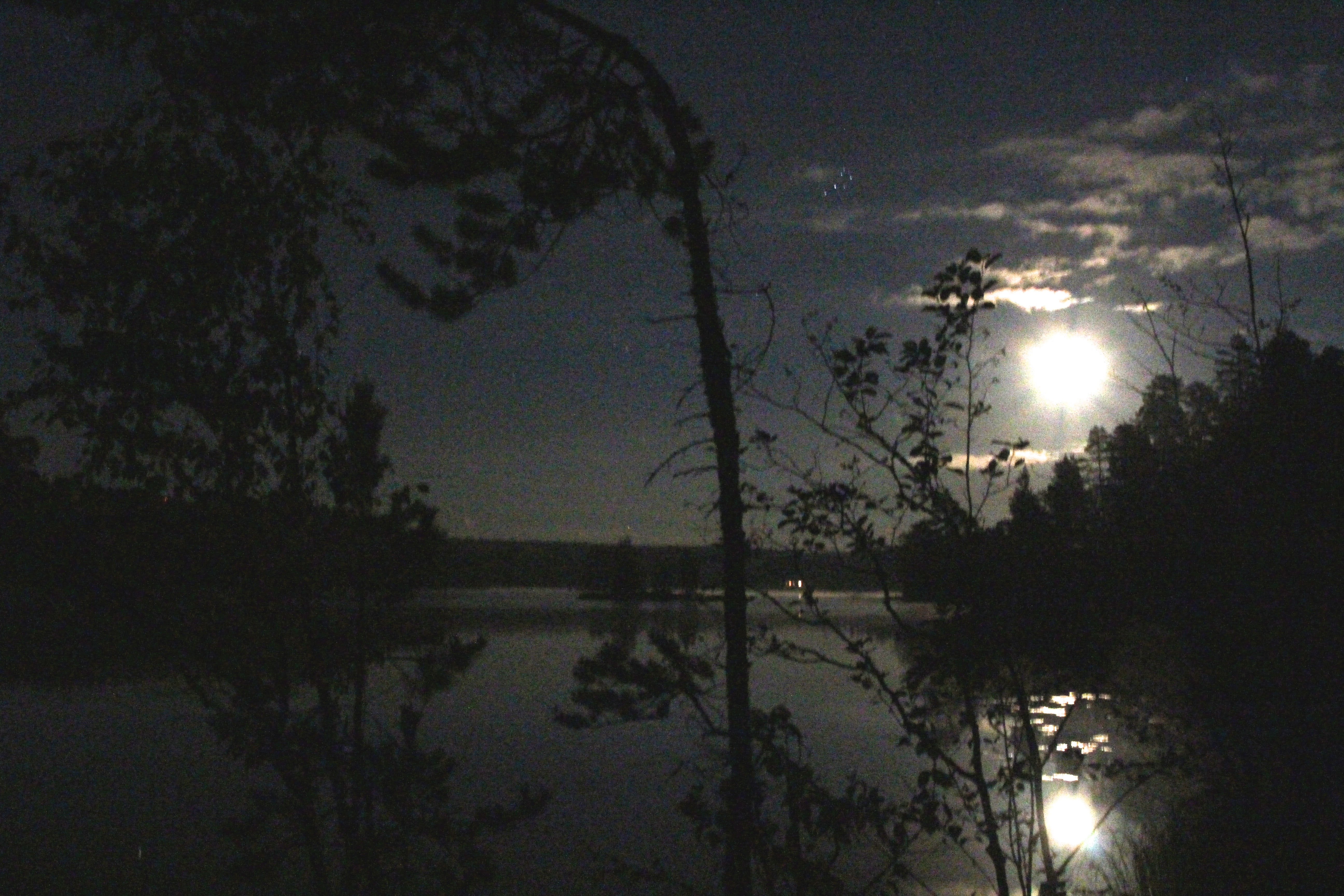Suite à une alerte Aurores Boréales, nous passons la nuit dehors à quelques centaines de mètres de notre campus. En lieu et place de lumière nordique, nous avons droit à un magnifique lever de lune et à quelques moustiques.