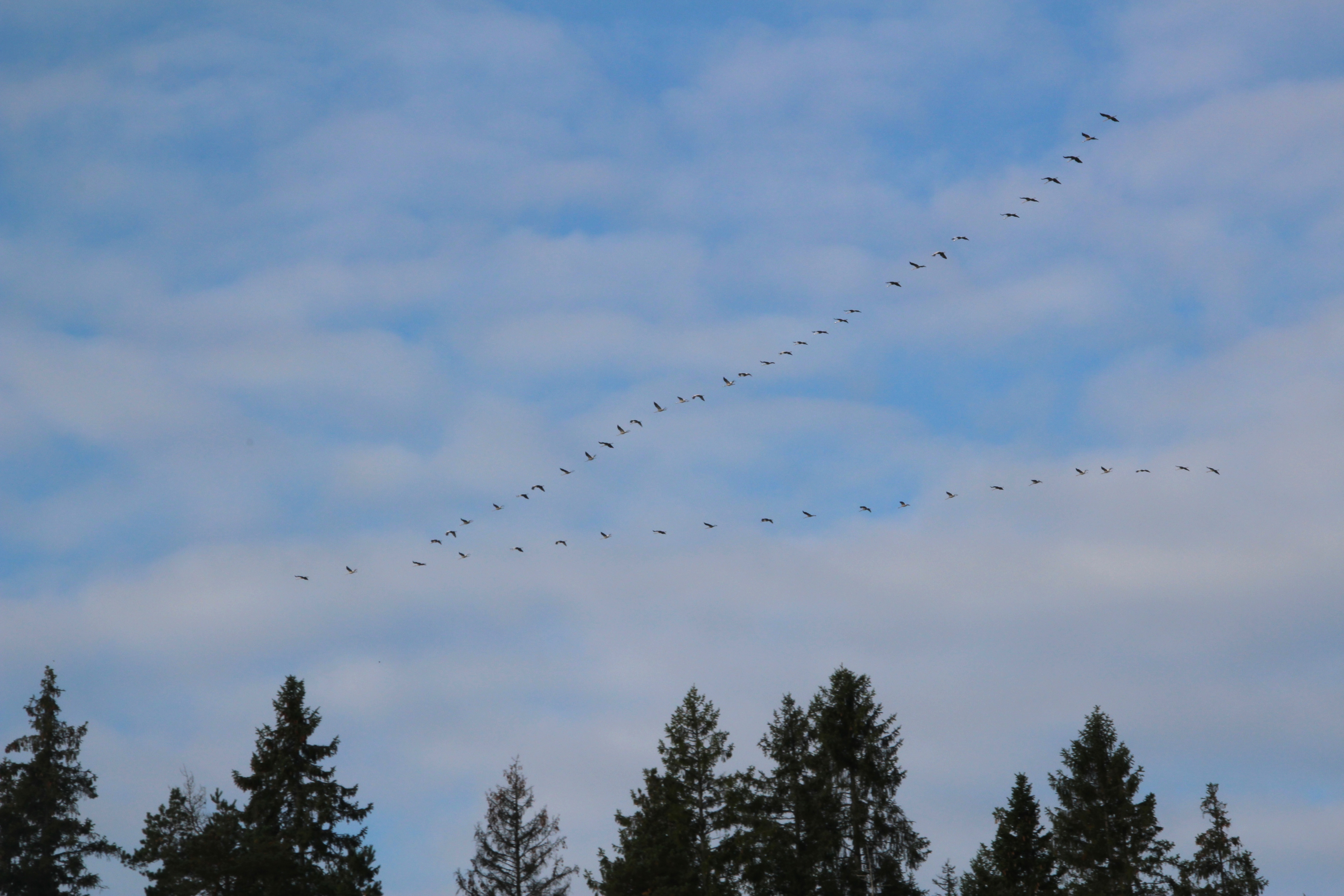 Au petit matin, un vol de grues en partance pour le sud nous confirme que l’été touche à sa fin. La chute des températures ne saurait contredire ce moment magique où des centaines d’oiseaux passent au-dessus de nos têtes dans un vacarme impressionnant.