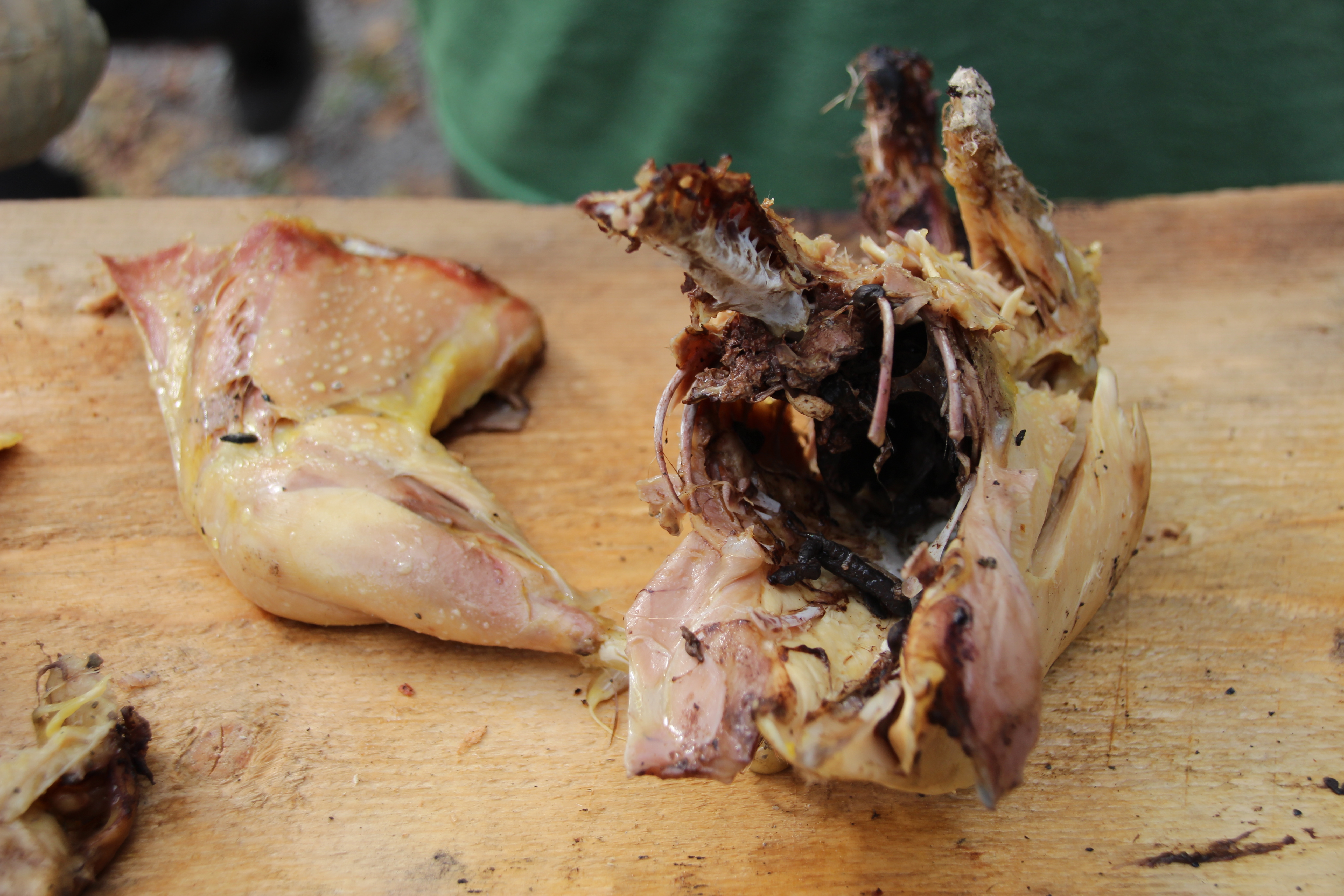 Breast, legs and stomach of one rooster