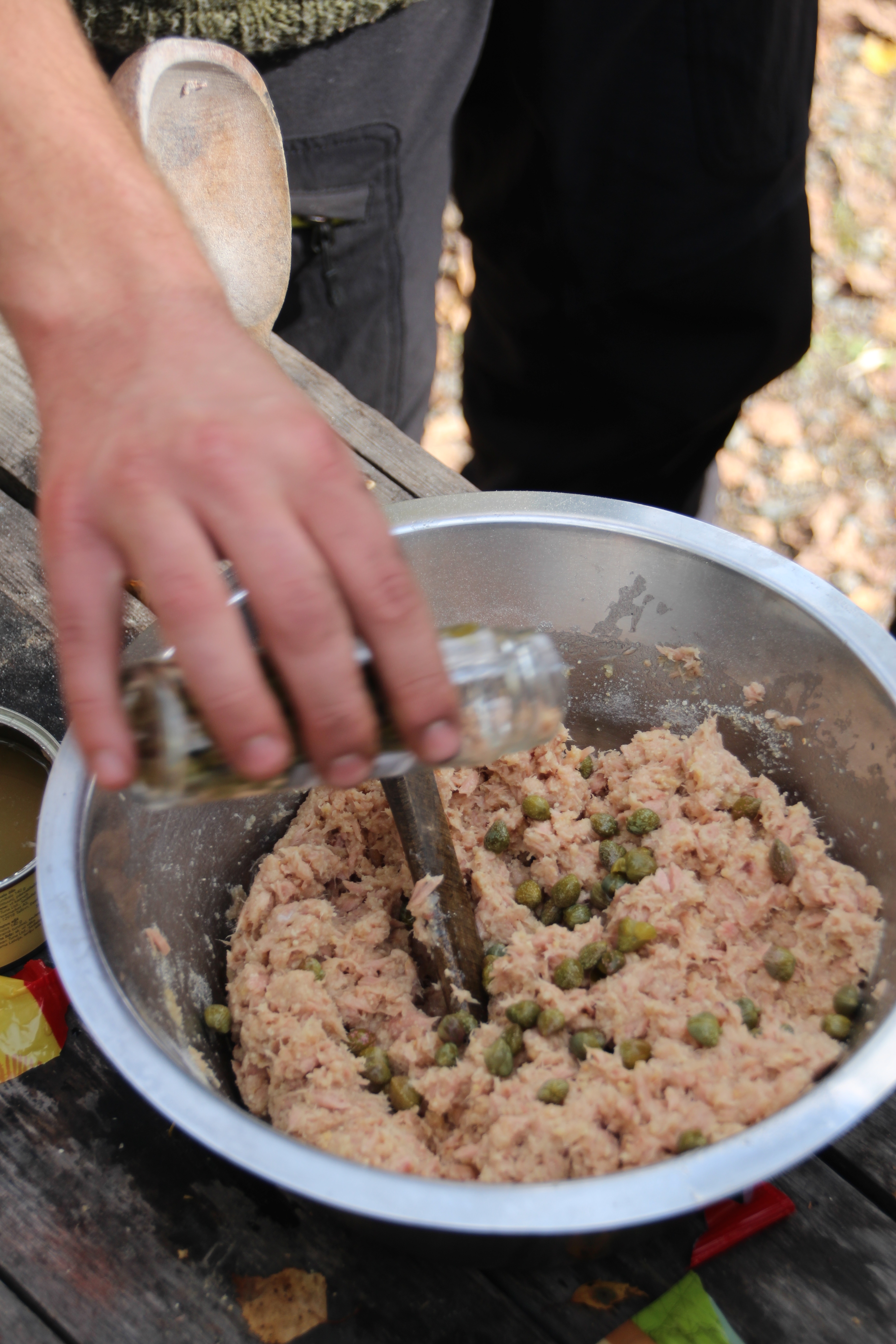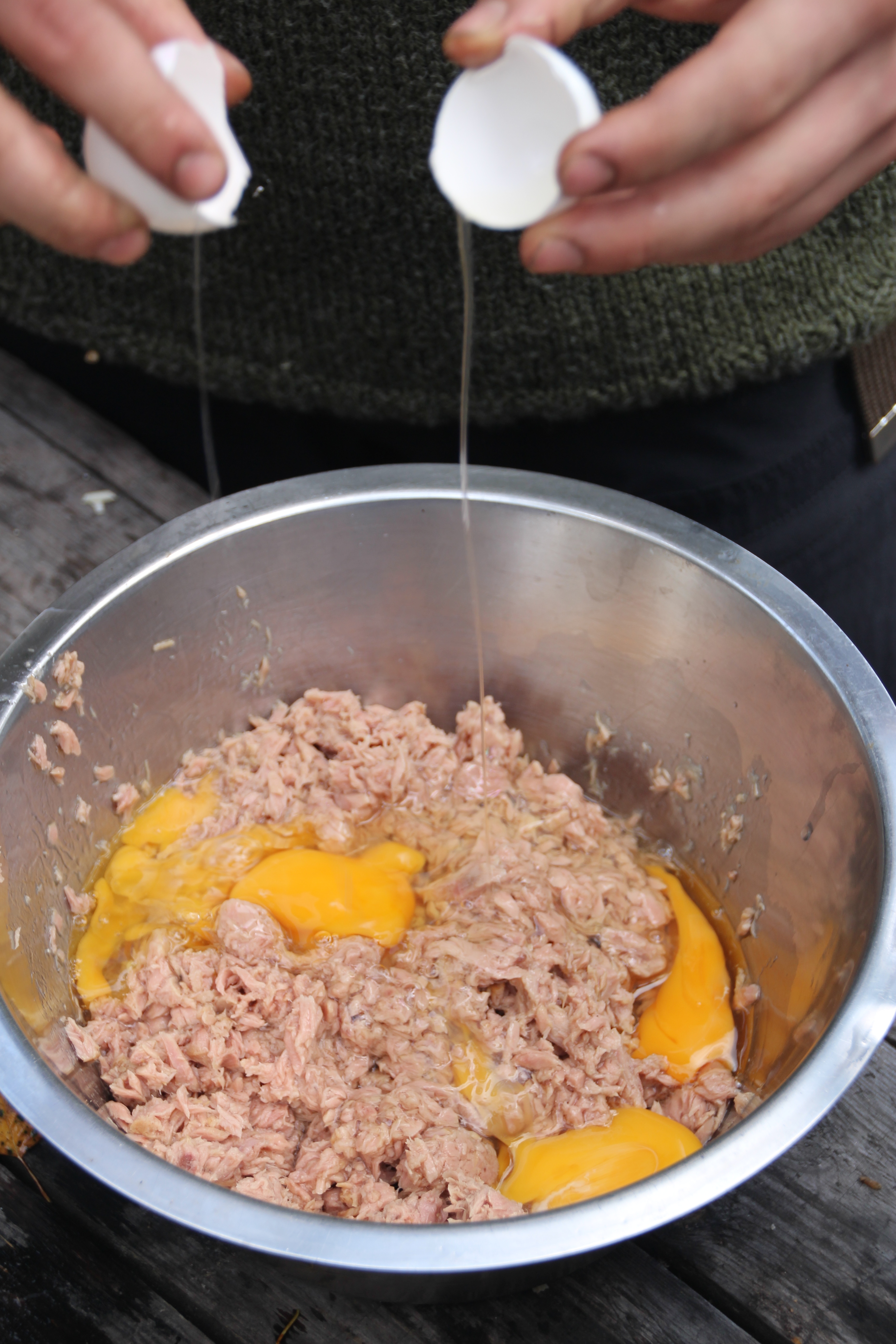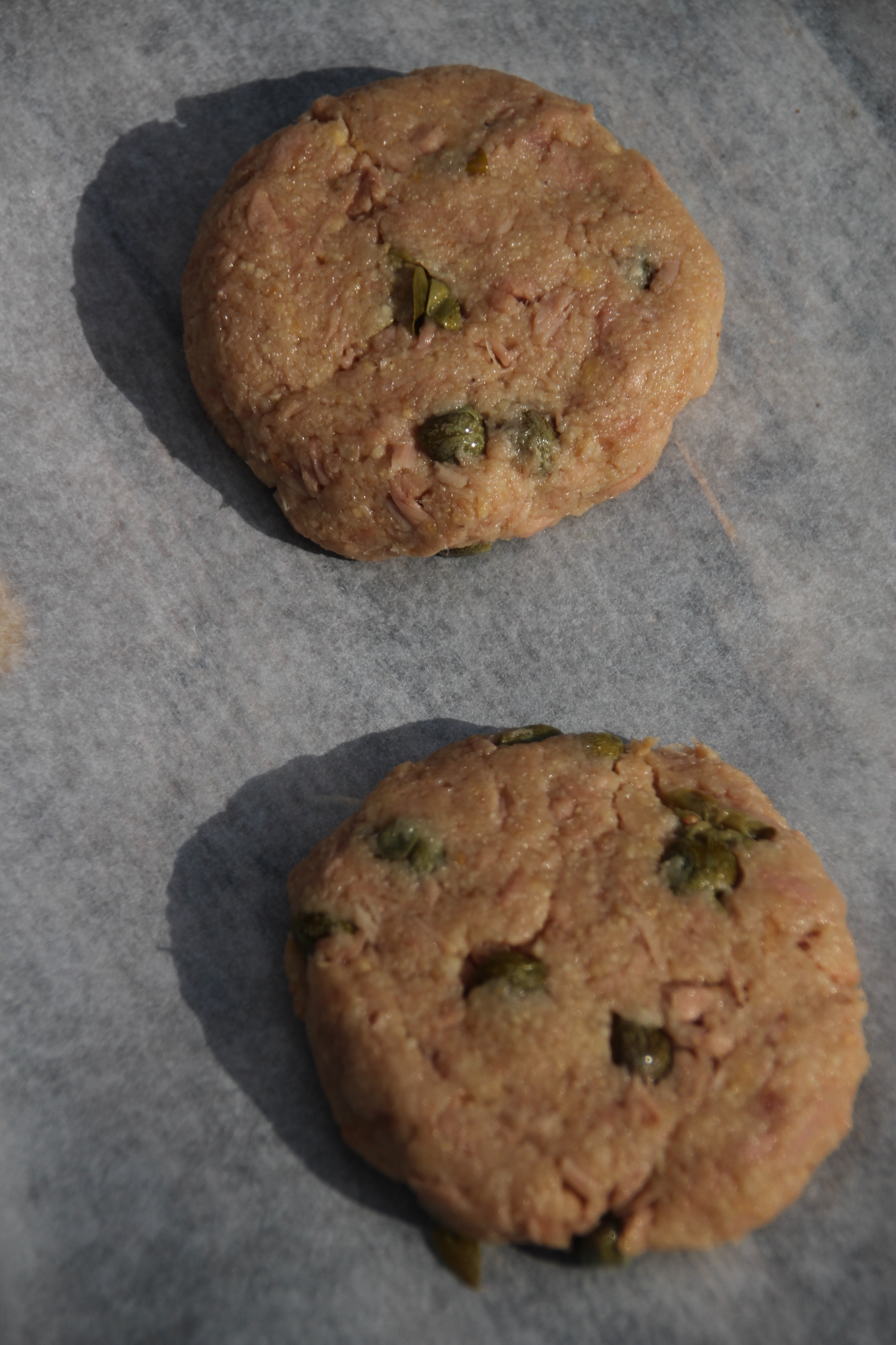 Dans le bol, mélanger le thon et la farine. Ajouter les œufs un à un, puis incorporer les câpres à la pâte ainsi obtenue.