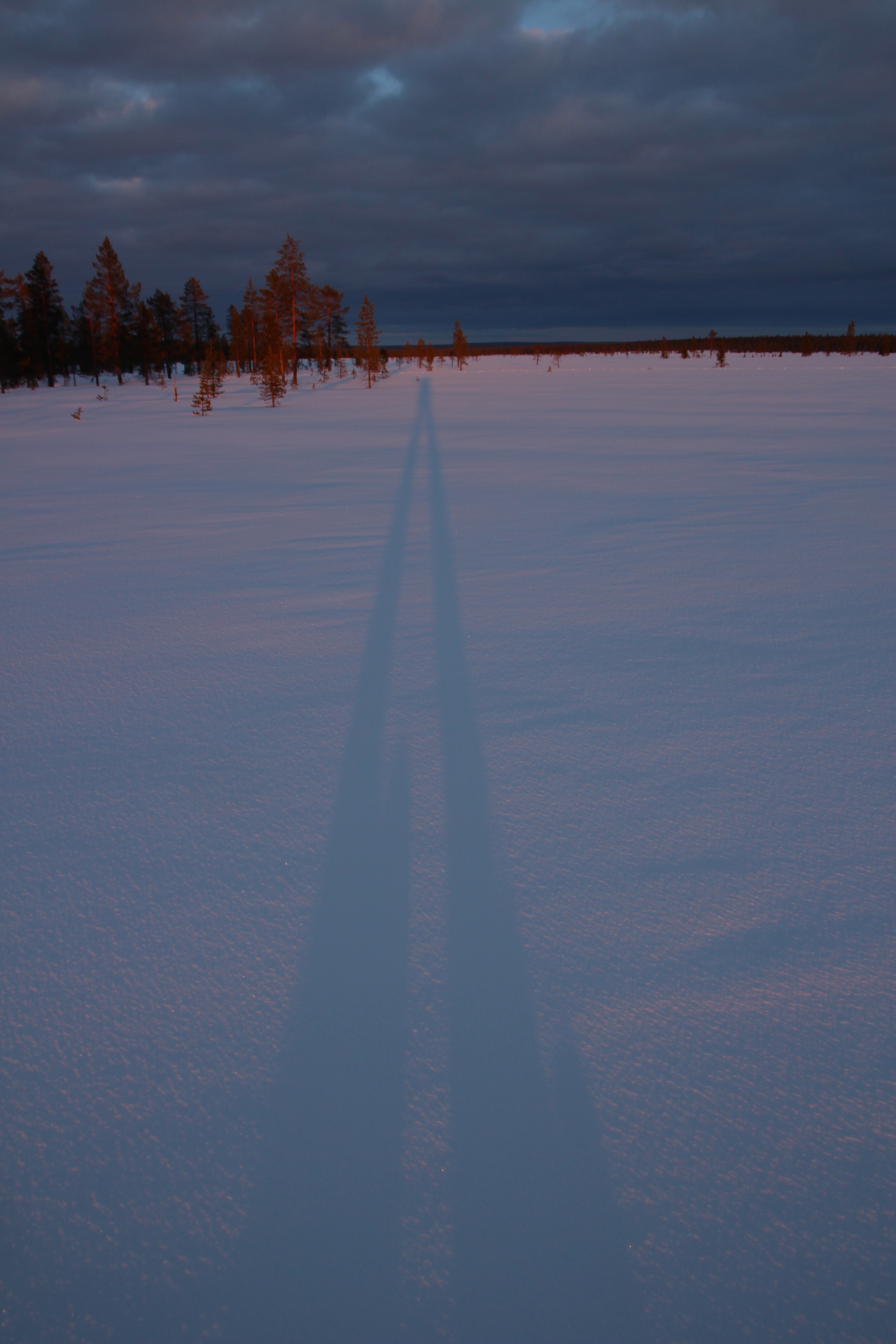 Tout à son effort, il ne se retourne pas une fois lors de son ascension. Parvenu au sommet, il scrute les environs avec l’espoir de voir leurs traces mais c’est d’abord la beauté du paysage qui le frappe. La chance est avec lui, le ciel se dégage et son regard peut porter à des kilomètres. La masse sombre de la végétation se découpe sur la dentelle des lacs et des tourbières immaculés. Le spectacle est somptueux. Mais vite, il repère les formes sombres qui avancent sur la neige. Les hommes suivent le grand lac qui s’étend sur des kilomètres. La couche de neige plus fine sur le lac permet aux mulets de progresser plus aisément. C’est un choix logique mais qui ne leur permet pas de se dissimuler.