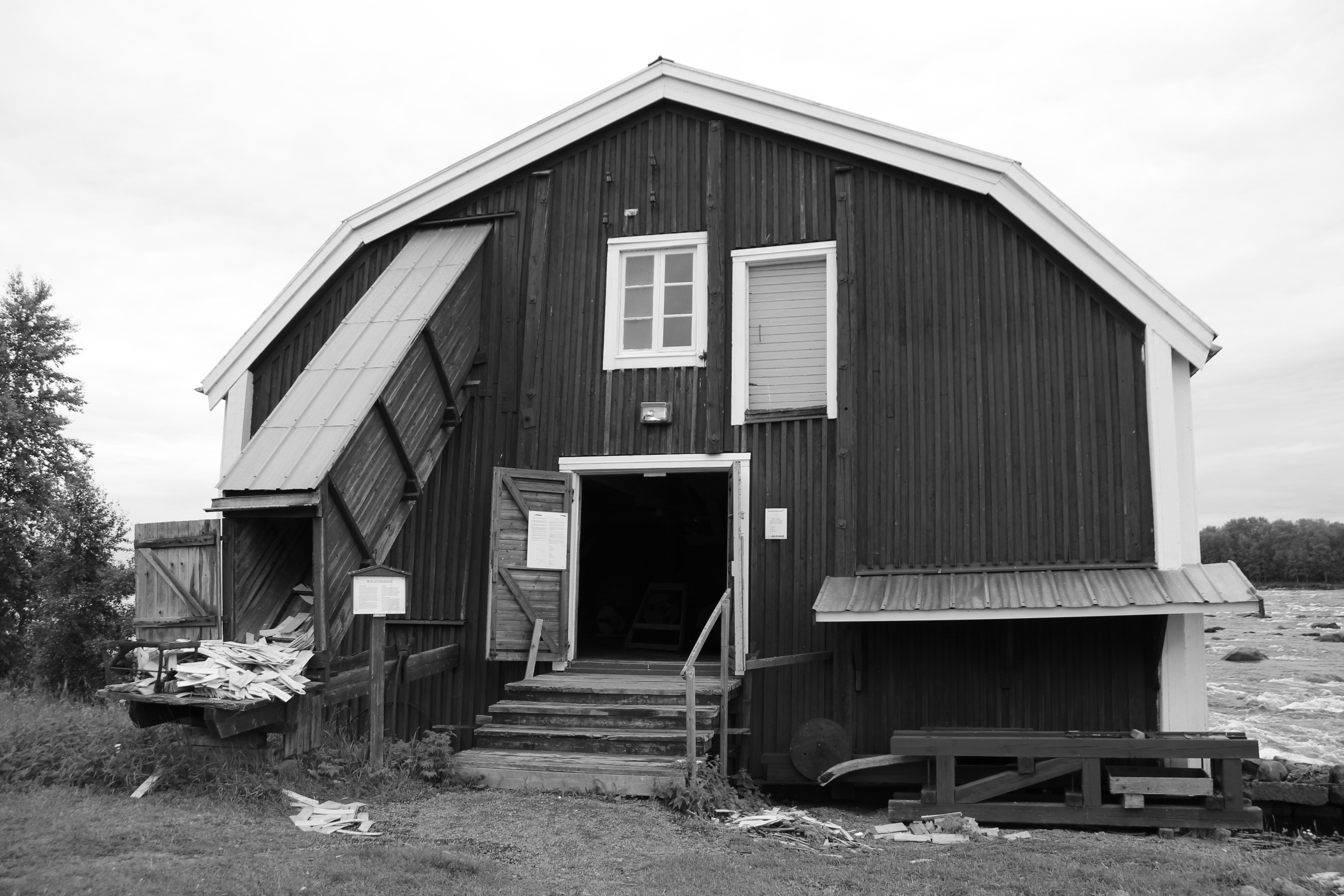 The sawmill was built in 1903. Timber was fetched from the woods around Kukkola, and a substantial quantity was also floated down the river, particularly from the Finnish municipality of Ylitornio. From 1926 lorries were used to fetch the timber from the woods. The timber was put up onto the river bank above the sawmill, and lifted up onto the saw-bench with the help of a winch. There were always at least four men working in the sawmill at the same time. One man fed in the timber, two did the sawing, and one received the sawn wood. When the wood was sawn and ready it was then driven out on wagons on a so-called Decauville-track, a narrow guage railway on which the wagons were pushed by hand. The sawmill was in operation until around 1970.