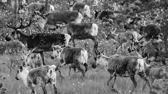 This type of grouping will be renewed in late summer and fall before winter. The adult reindeer will have gained 30% more weight thanks to the conjunction of two phenomena, the mosquitoes will have disappeared and they will settle down because they will no longer have to escape the insects. In addition, the mushrooms will replace lychens and plants.