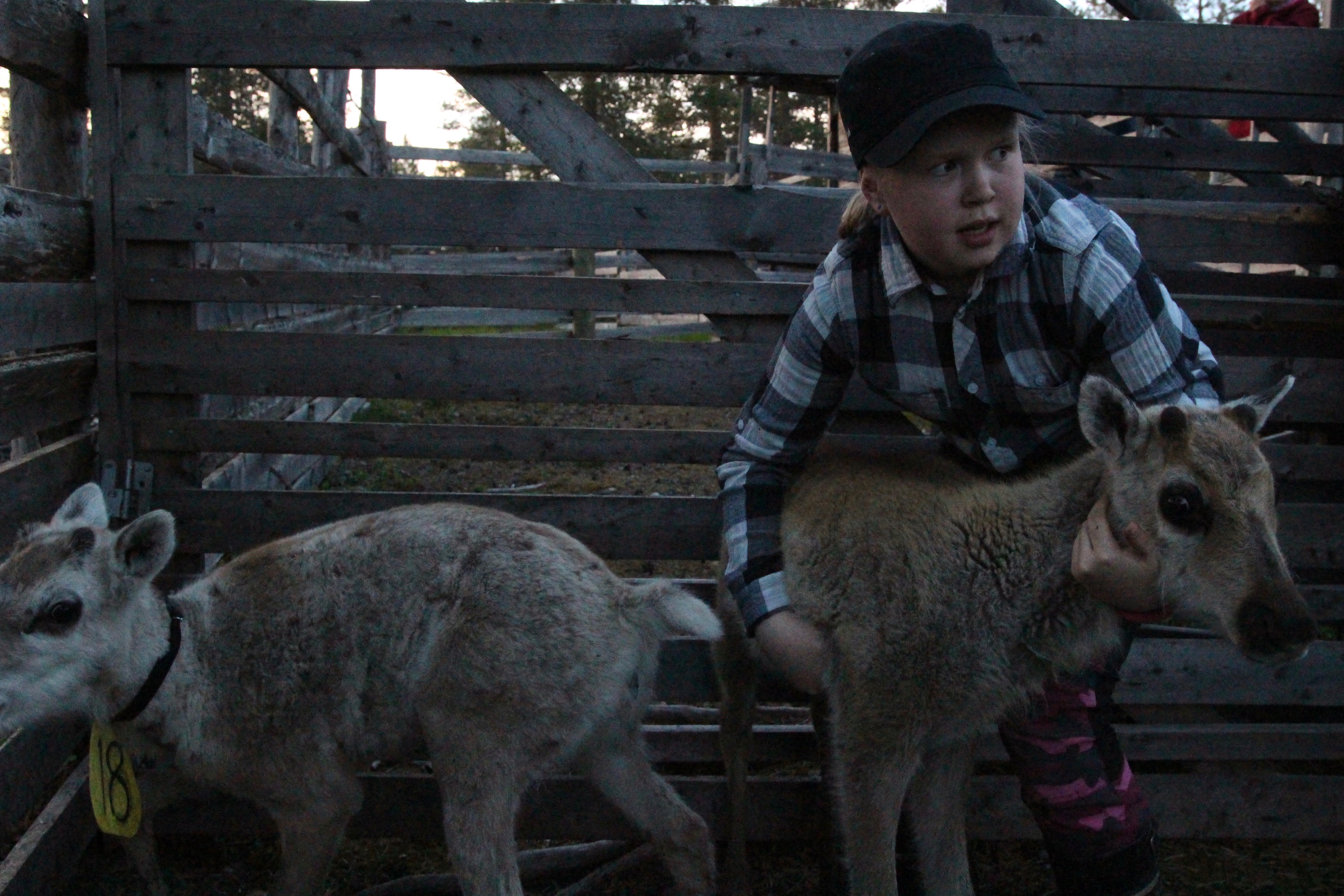 Les éleveurs de la région sont parmi les seuls de Finlande à utiliser un ingénieux système pour séparer les jeunes des adultes. Au bout de l’entonnoir, un tunnel bas impose aux faons de passer en dessous tandis que les rennes adultes peuvent sauter sur la plateforme formée par le tunnel et ainsi s’échapper. Les jeunes débouchent sur un petit enclos où les enfants s’empressent de leur mettre un numéro autour du cou. Cette méthode plus souple a été préféré à l’usage du Suopunki le lasso des sames qui traumatise plus les faons.